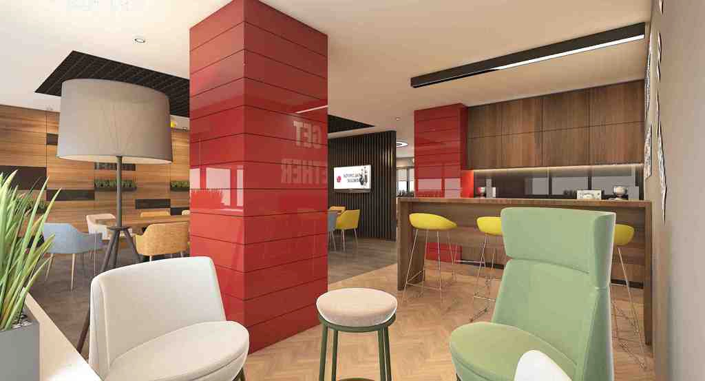 Günlük çalışma ortamından uzaklaşmak isteyen personelin hayali, ofis dekorasyonu içinde bir cafe ortamı gibi farklı bir alan olarak ortaya çıkıyor.