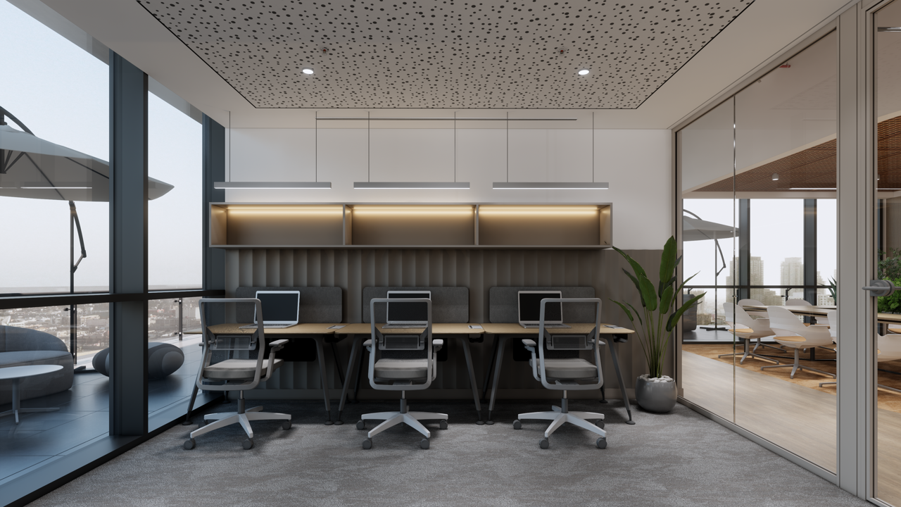 İstanbul Finans Merkezinde bulunan proje, farklı disiplinlerden kullanıcıları aynı çatı altında buluşturan, esnek ve dinamik bir cowork çalışma ortamı oluşturma amacıyla tasarlanmıştır. Günümüz çalışma alışkanlıklarının değişmesiyle birlikte ofisler yalnızca masa başı çalışma alanları değil; iletişimin, üretimin ve sosyalleşmenin gerçekleştiği çok katmanlı mekanlara dönüşmektedir. Bu yaklaşım doğrultusunda projede farklı çalışma senaryolarına cevap verebilen, kullanıcıların ihtiyaçlarına göre şekillenebilen esnek bir mekansal kurgu oluşturulmuştur. Mekan içerisinde açık çalışma alanları, bireysel odaklanma alanları, toplantı odaları ve ortak kullanım alanları bir arada kurgulanarak kullanıcıların farklı çalışma biçimleri arasında kolayca geçiş yapabilmesi hedeflenmiştir. Bu sayede hem bireysel verimlilik hem de ekip içi etkileşim desteklenmiştir.