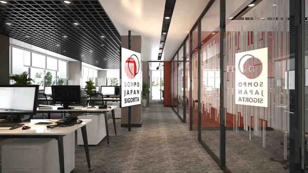 Sompo Sigorta 250 m2'lik İstanbul Ataköy bölge ofisi konsept tasarım, proje ve uygulama işidir. Fabrika mimarlık tarafından tasarlanan ve daha önce diğer bölge ofislerinde uyguladığımız konsept bu bölge ofisine de uygulanmıştır. Ofis dekorasyonu uygulaması 24 günde tamamlanmıştır.