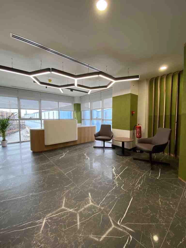 İstanbul Tuzla'da bulunan 1100 m² ofis dekorasyonu tasarım ve uygulama projesidir. Ofis, kullanıcılara esnek mekanlarda çalışıp, toplantı ve görüşmelerini yapabilecekleri, birbirleri ile etkileşim halinde olabilecekleri bir çalışma ortamı sunmayı amaçlayacak şekilde tasarlanmıştır. Resepsiyon alanı, açık ofis, yönetici odaları, toplantı ve görüşme odaları, sosyal alanlar ve ıslak hacimlerden oluşan ofis dekorasyonu projesinin konsept tasarımı, mimari projeleri, uygulama ve mobilya imalatları Fabrika Mimarlık tarafından gerçekleştirilmiştir.