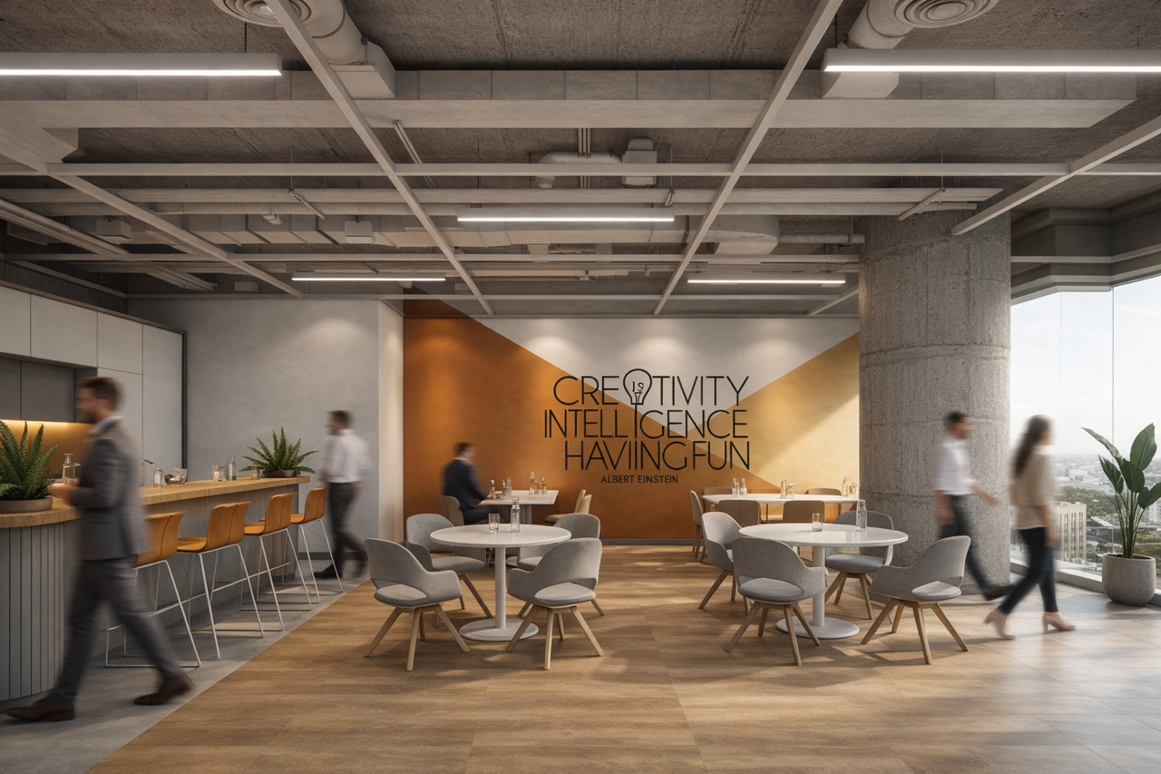 Tasarım yaklaşımında, kurumsal kimliği yansıtan sade ve modern bir dil benimsenmiştir. Mekânın genelinde kullanılan malzeme ve renk paleti; profesyonel, dinamik ve zamansız bir atmosfer oluşturmayı hedefler. Açık alanlarda ferah bir algı yaratılırken, sosyal alanlarda daha sıcak bir atmosfer kurgulanmıştır. Bu sayede çalışanların gün içindeki farklı ihtiyaçlarına karşılık verebilen dengeli bir çalışma ortamı elde edilmiştir.