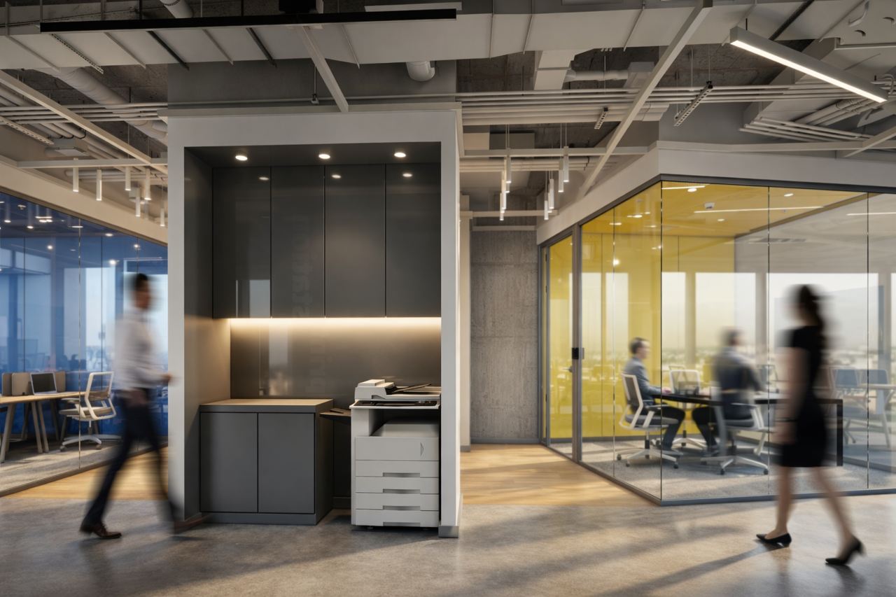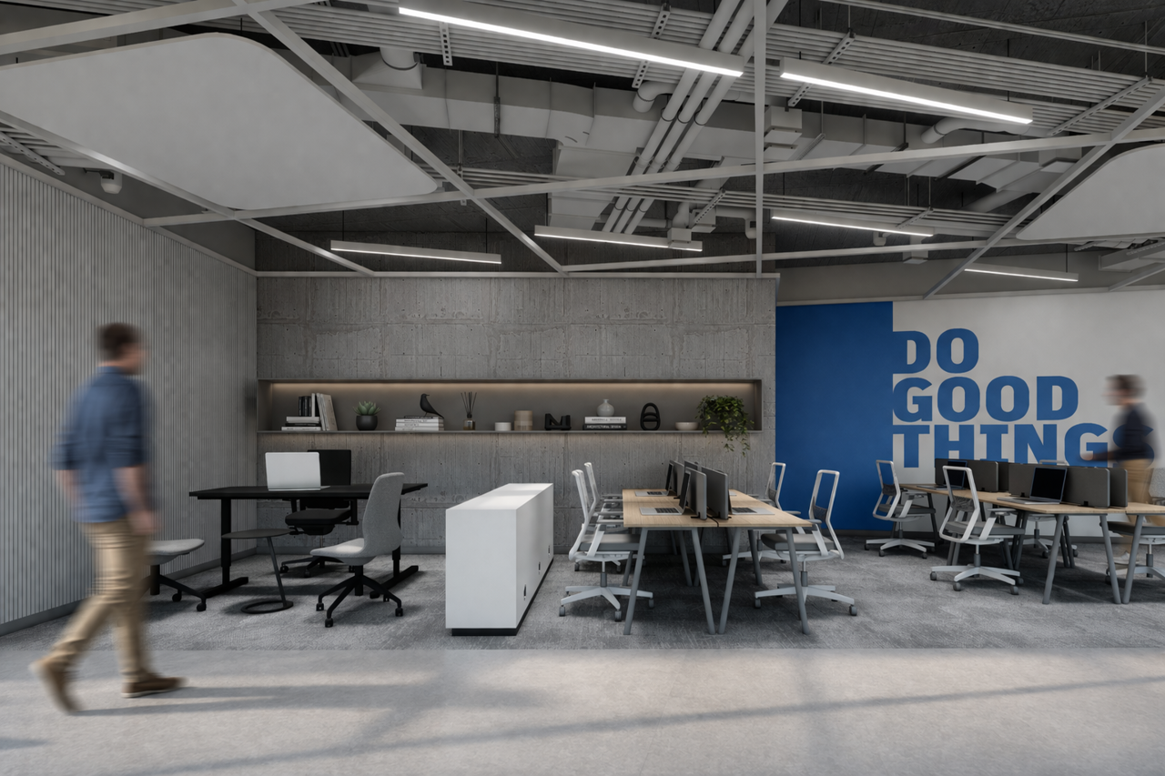 Proje, işlevsellik ve kullanıcı konforunu bir araya getirerek verimli ve sürdürülebilir bir ofis ortamı sunmaktadır.