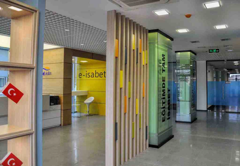 İstanbul Dudullu’da bulunan Özel İsabet Koleji’nin resepsiyon, ofis ve kütüphane alanlarının konsept, mimari proje ve uygulaması işidir. 486 m2’lik çalışma alanında inşaat, elektrik, mekanik ve mobilya uygulamaları anahtar teslim olarak 35 günde tamamlanmıştır.